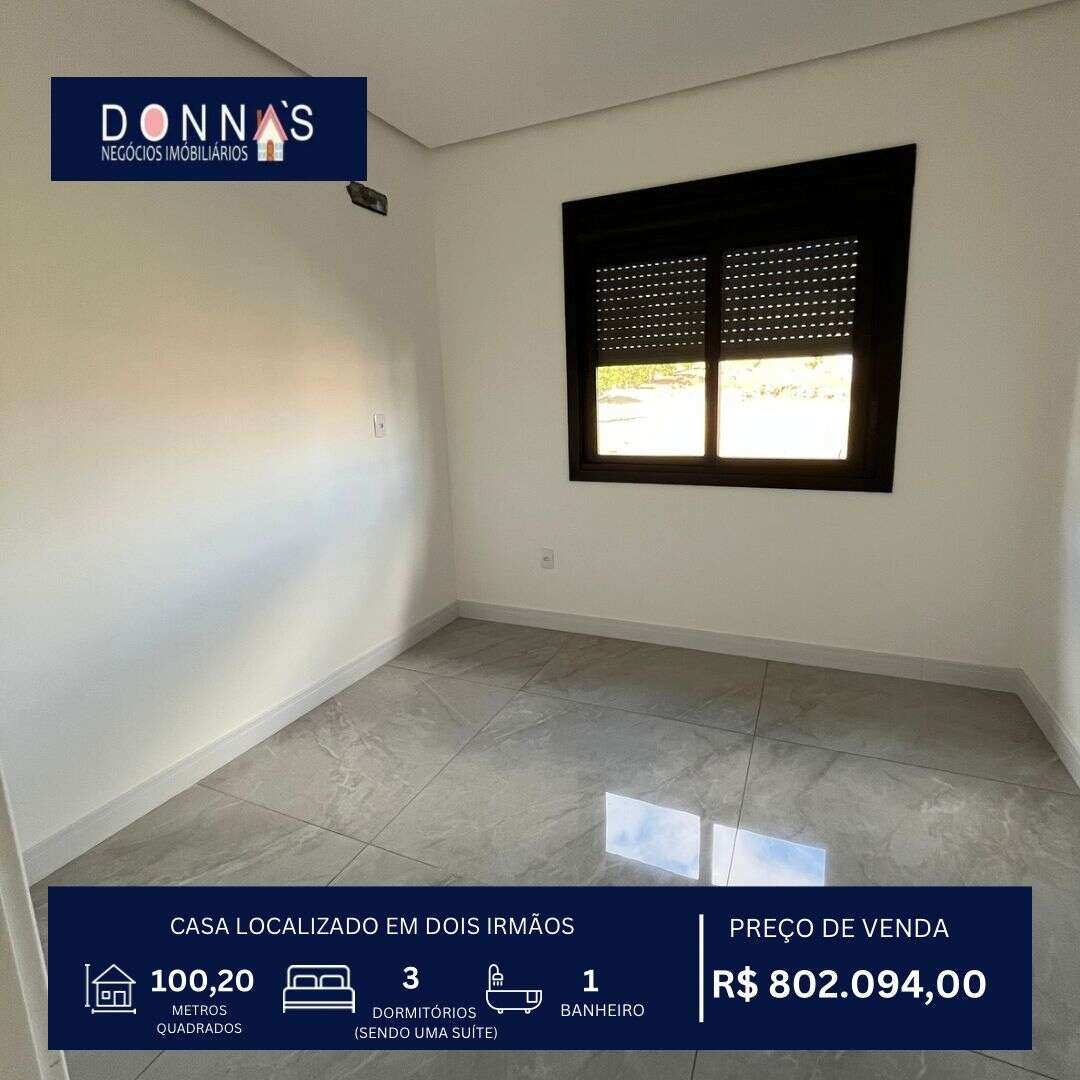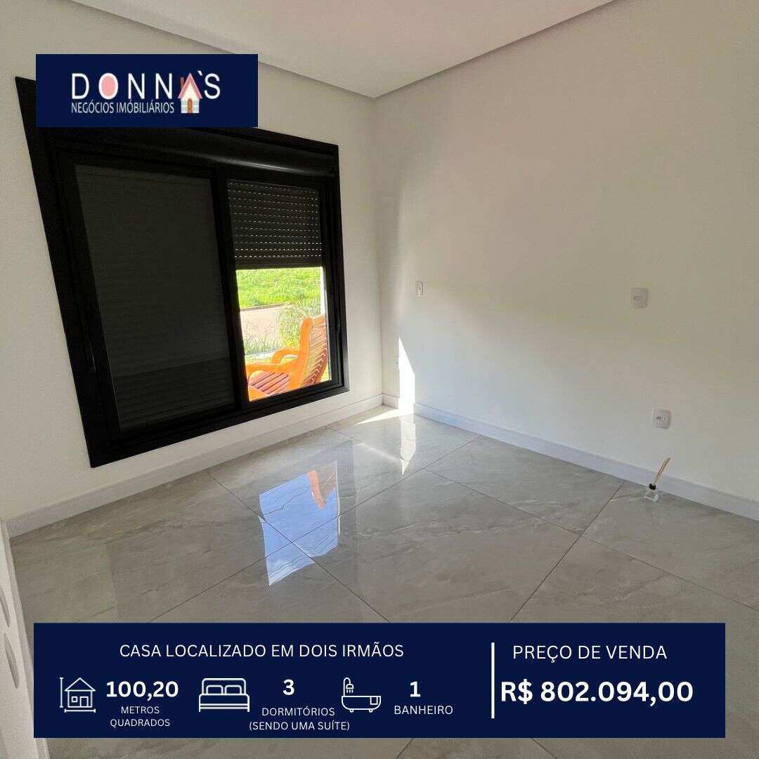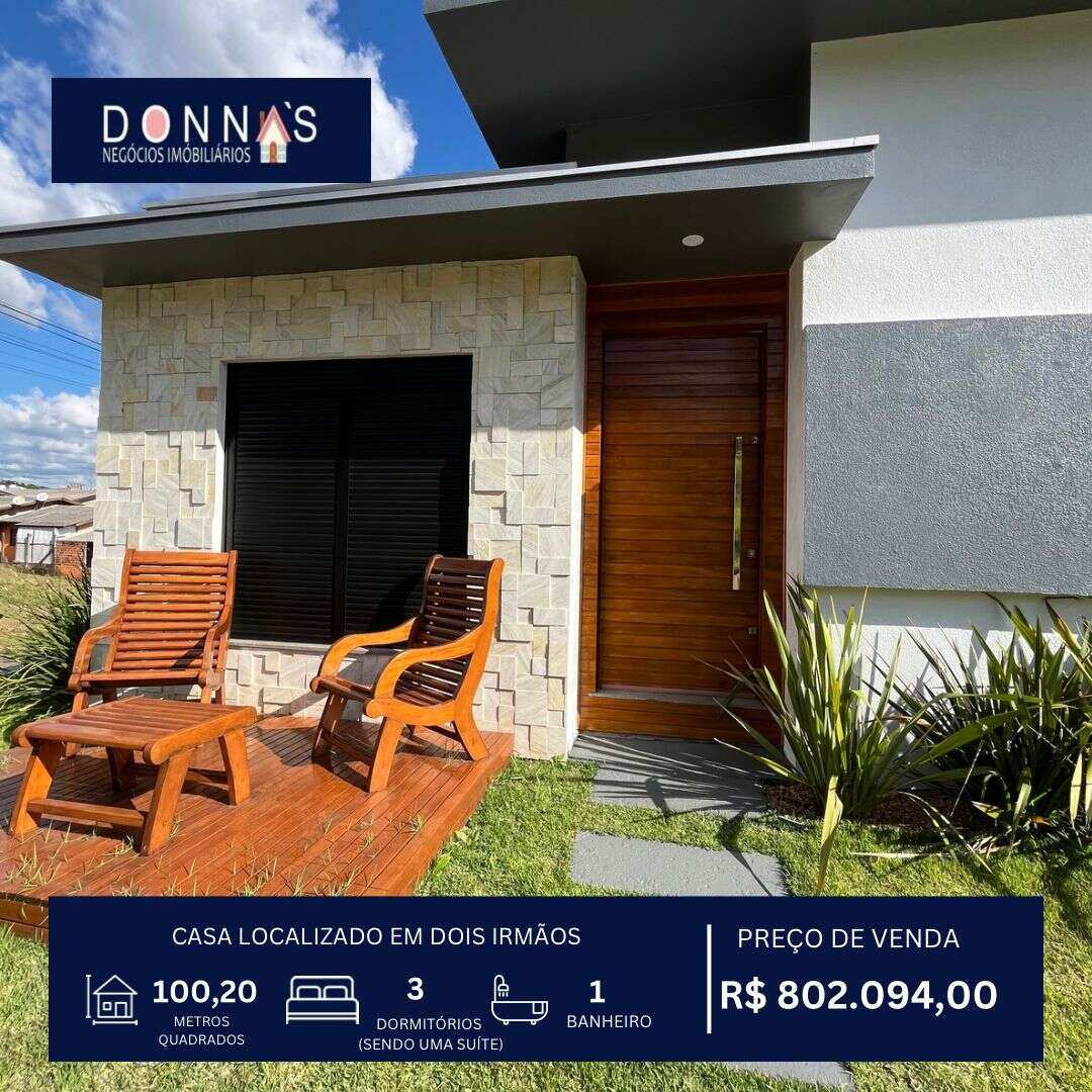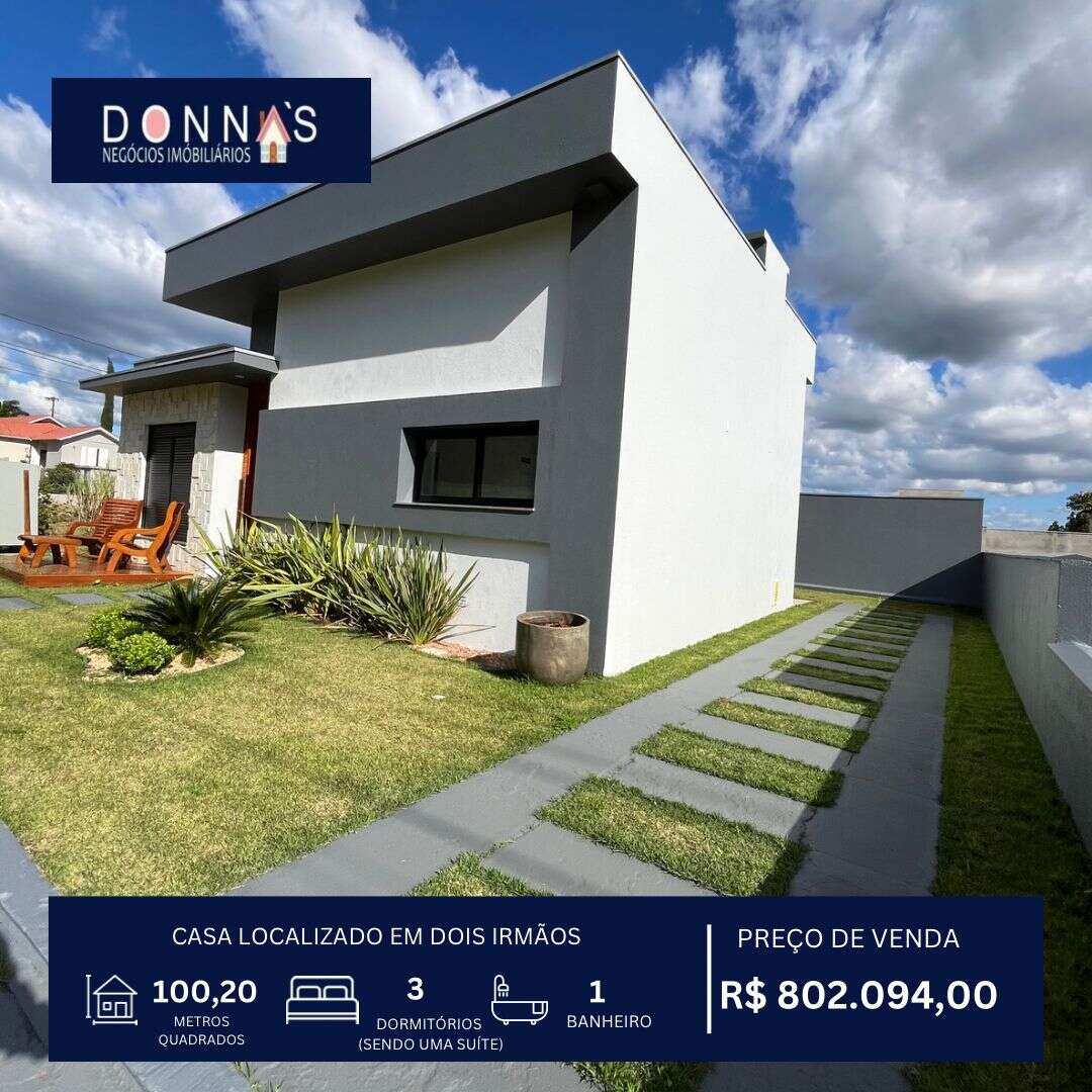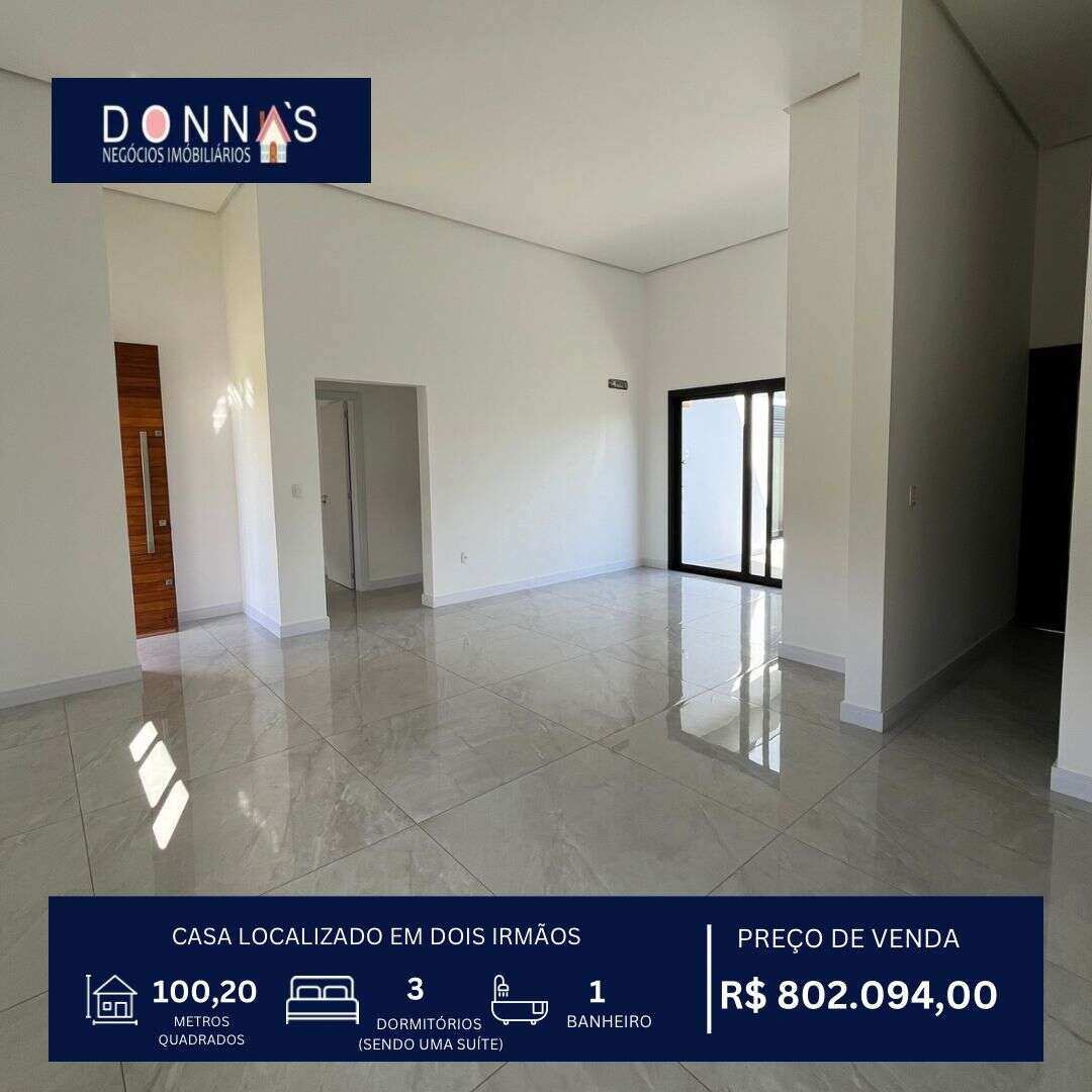 Novo Casa à venda em Dois Irmãos, com 3 quartos, 106m² CA0101 Casa à venda em Dois Irmãos, com 3 quartos, 106m² Venda R$ 790.400,00 Endereço não informado 03 01 106 m² 02 Ver imóvel