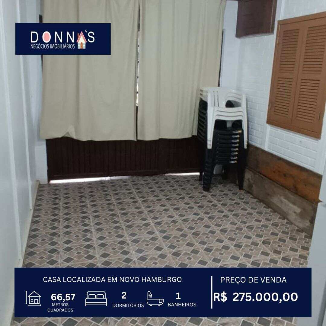 Disponível Casa com 2 quartos, à venda em Novo Hamburgo, canudos TE0009 Casa com 2 quartos, à venda em Novo Hamburgo, canudos Venda R$ 265.000,00 canudos, Novo Hamburgo 02 01 56m² m² 01 Ver imóvel